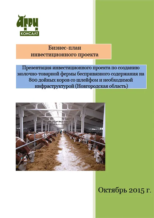 Презентация инвестиционного проекта по созданию молочно-товарной фермы беспривязного содержания на 800 дойных коров со шлейфом и необходимой инфраструктурой (Новгородская область)
