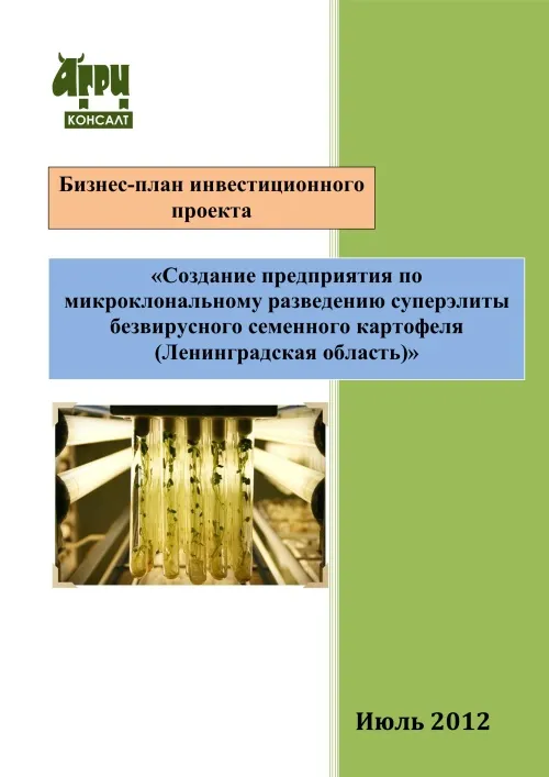 Бизнес-план инвестиционного проекта по созданию предприятия по микроклональному разведению суперэлиты безвирусного семенного картофеля (Ленинградская область)