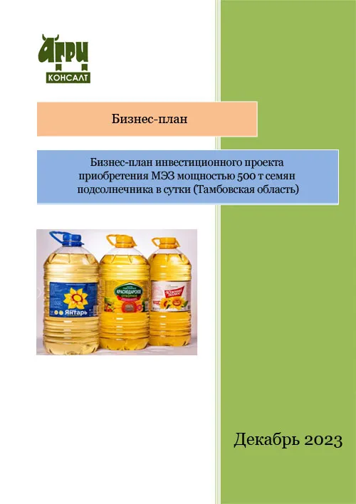 Бизнес-план инвестиционного проекта приобретения МЭЗ мощностью 500 т семян подсолнечника в сутки (Тамбовская область)