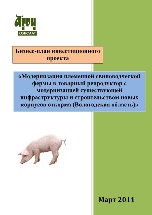 Бизнес-план инвестиционного проекта по модернизации племенной свиноводческой фермы в товарный репродуктор с модернизацией существующей инфраструктуры и строительством новых корпусов откорма (Вологодская область)